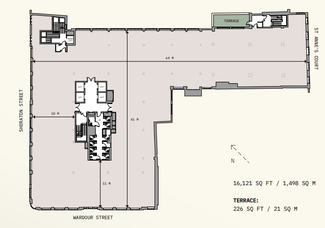 Introducing a rare HQ opportunity on an unprecedented scale in Soho, W1. Film House boasts eight expansive floors of unmatched quality, space, and tranquillity in a vibrant central location, just 100 metres from the Elizabeth Line. Featuring a hidden courtyard, luxury rooftop lounge, and terrace, this urban oasis is designed to elevate your workday at every level.