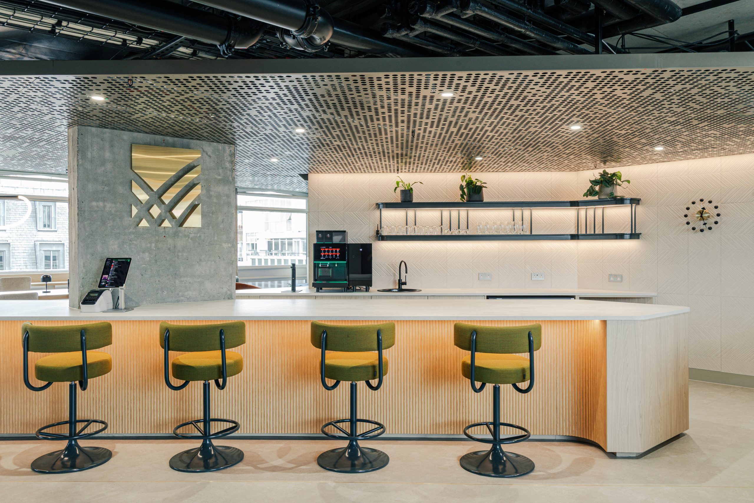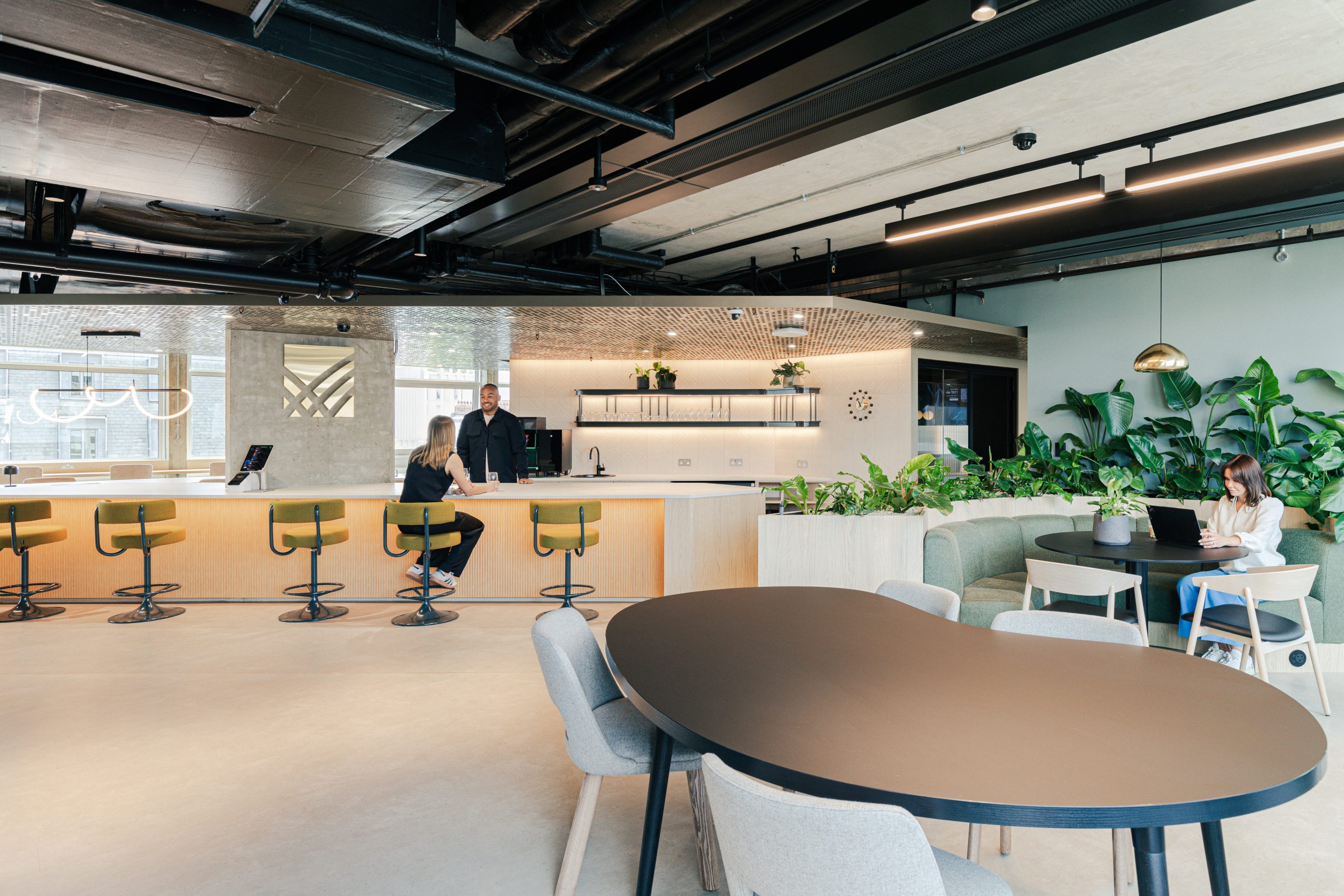 We delivered a full CAT B fit-out of Space House’s iconic tower in central London. Inspired by the brutalist architecture of the building itself, we embraced raw finishes like exposed concrete and bold geometries, softened with natural materials and layered textures. The layout champions inclusivity and wellbeing, offering a range of zones for collaboration, focus, social connection, and retreat.