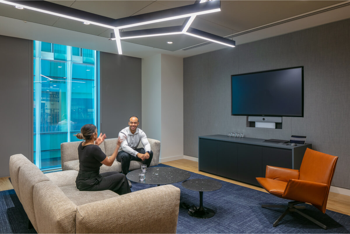 We created a flexible floor plan that harmonises with the Nova Building’s angular architecture, maximising the influx of natural light through expansive windows, as a result supporting wellbeing and productivity.